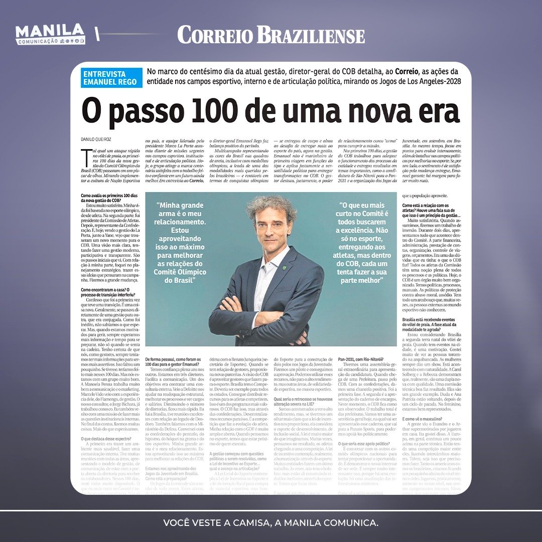 Conectar valores. Unir grandes marcas à atletas, equipes e bons projetos. Com a experiência de vender boas histórias, a Manila busca as melhores oportunidades para seus clientes, mapeando o mercado em busca de parceiros que vibrem na mesma sintonia. É entrega garantida e acompanhada ponta a ponta